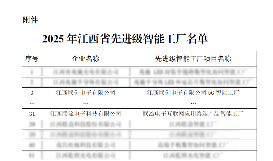 近日,江西省工业和信息化厅正式公布2025年江西省“先进级智能工厂”名单,186家企业入选。其中米兰网页版,米兰MILAN(中国)、江西联淦电子科技有限公司2家联创电子系企业名列榜单。这标志着公司在智能制造领域的创新成果再次获得政府权威认可。